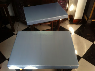 The handle is from an old wine cask drinks cabinet.  (Badly made)  The handle is solid metal, nice and big!  I have painted the box a beautiful metallic blue which will offset the brass and copper I add later.