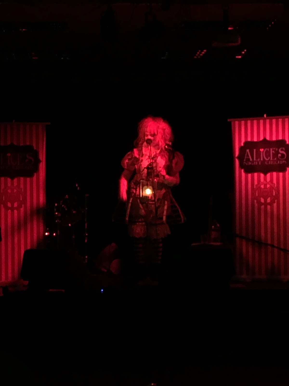 Then the music starts….this is Steampunk music I have been waiting for and I was not disappointed! Theatrical, operatic in nature and mysterious! The lights on stage are low and to either side of the singer are two banners proclaiming the artist about to perform: Alice’s Night Circus – the costume reminiscent of Alice in wonderland only more steampunkish and a bit spooky. The singing was mesmerising and beautiful, I was drawn into another world which spoke of endless possibilities and enchantments…swept on a wave of haunting melodies! I am glad I came out tonight to watch a good performer perform to a small audience of maybe 50-60 people!